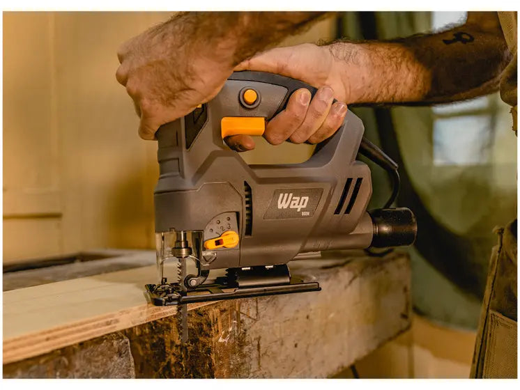 A Serra Tico Tico Wap ESTT 800 é uma ferramenta capaz de executar cortes retos e curvos, além de outras formas personalizadas de corte. Com potência elétrica de 800W, é uma ferramenta versátil que pode ser usada em diversos tipos de materiais, como aço, alumínio ou madeira. Com seletor de velocidade, você pode escolher do nível 1 ao 6, para maior controle e desempenho do trabalho. O encaixe da lâmina é fácil e rápido, através do sistema de troca de lâminas sem chaves. Conta com 3 posições de ajuste para avanço pendular, para cortes mais rápidos. Ideal para manutenções, faça você mesmo, pequenas reformas, e até para quem deseja realizar trabalhos mais robustos. É uma ferramenta elétrica com base ajustável para cortes angulares, com maior precisão e velocidade durante o uso. A Serra Tico Tico Wap ESTT 800 possui pegada ergonômica e emborrachada, além de botão trava para trabalhos contínuos, oferecendo maior praticidade e conforto durante o uso. Vem com bocal de aspiração que permite a sua conexão a um aspirador de pó, o que ajuda a manter a limpeza do ambiente, garantindo uma operação mais eficiente e profissional. Com guia de corte paralela, os cortes ficam muito mais precisos. A ferramenta também possui um suporte para guardar a chave Allen, o que ajuda a trabalhar com mais organização. É uma das ferramentas elétricas de marcenaria mais usadas, e conta com a qualidade Wap para diversas tarefas. E para completar vem com a garantia de 1 ano assinada pela marca.
